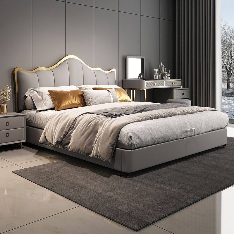 Modern Luxury Full Queen Size Solid Wooden Bed Frame with Luxury Leather Upholstered Headboard Bedroom Panel Bed