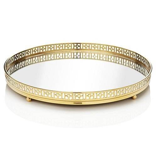 ถาดกระจกทองเหลืองสีทองหรูหราทันสมัยอุปกรณ์จัดระเบียบเครื่องสำอางตกแต่งโต๊ะทรงกลมพร้อมที่เก็บน้ำหอมเครื่องประดับสไตล์ร่วมสมัย
