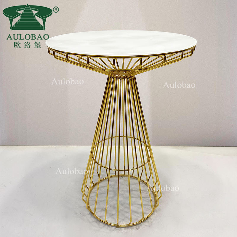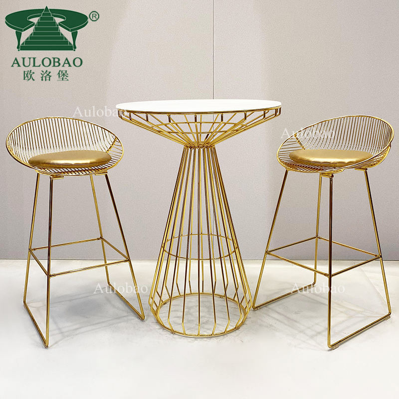 ชุดโต๊ะและเก้าอี้เหล็กกลมเหล็กสีทองหรูหราทันสมัย