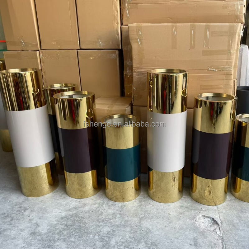 แจกันตั้งพื้นสีทองขนาดใหญ่หรูหราทันสมัยสำหรับตกแต่งบ้านกระถางต้นไม้โลหะตกแต่งทรงสูงกระถางต้นไม้โลหะสำหรับใช้ในร่ม