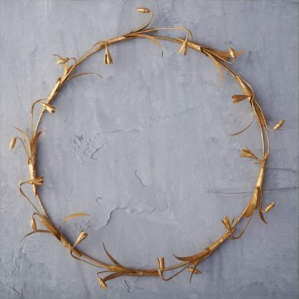 พวงหรีดโลหะสีทองหรูหราทันสมัย พร้อมลายใบไม้แบบนูน งานฝีมือสำหรับตกแต่งผนังห้องนั่งเล่น โรงแรม และหน้าต่างสำหรับเทศกาล