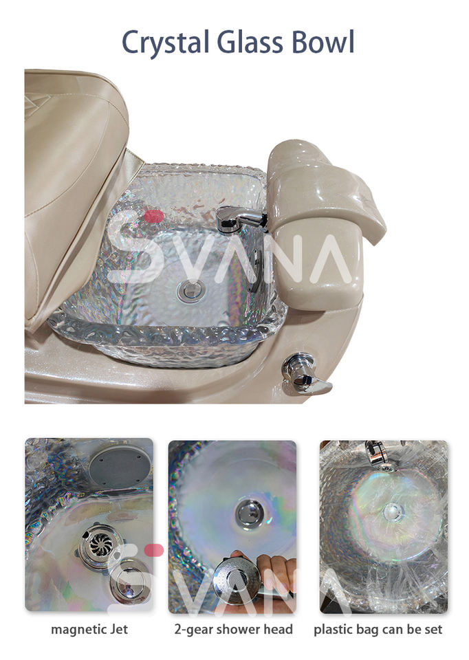 เก้าอี้ทำเล็บมือสปาเท้าหนัง PU สีทองหรูหราทันสมัยเก้าอี้นวดไฟฟ้าแม่เหล็กสำหรับร้านเสริมสวย