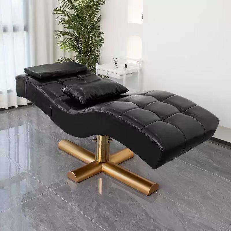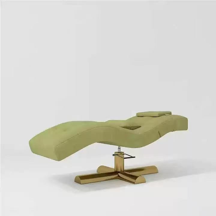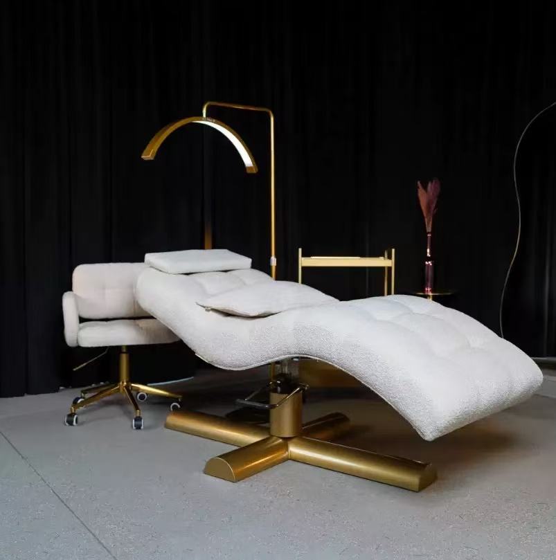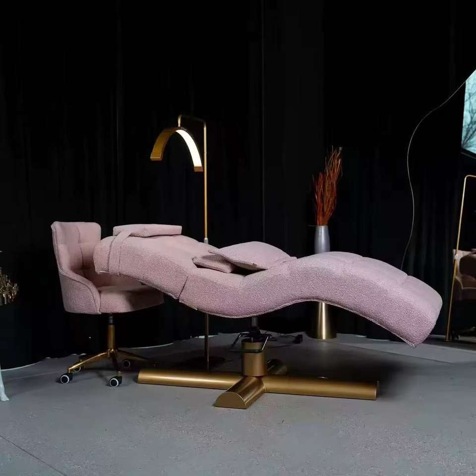 เฟอร์นิเจอร์ร้านเสริมสวยหรูหราทันสมัยคุณภาพสูง เตียงสปาหน้าผิวหนังสีชมพู ฐานสแตนเลส เตียงต่อขนตา เตียงเสริมสวยโค้ง