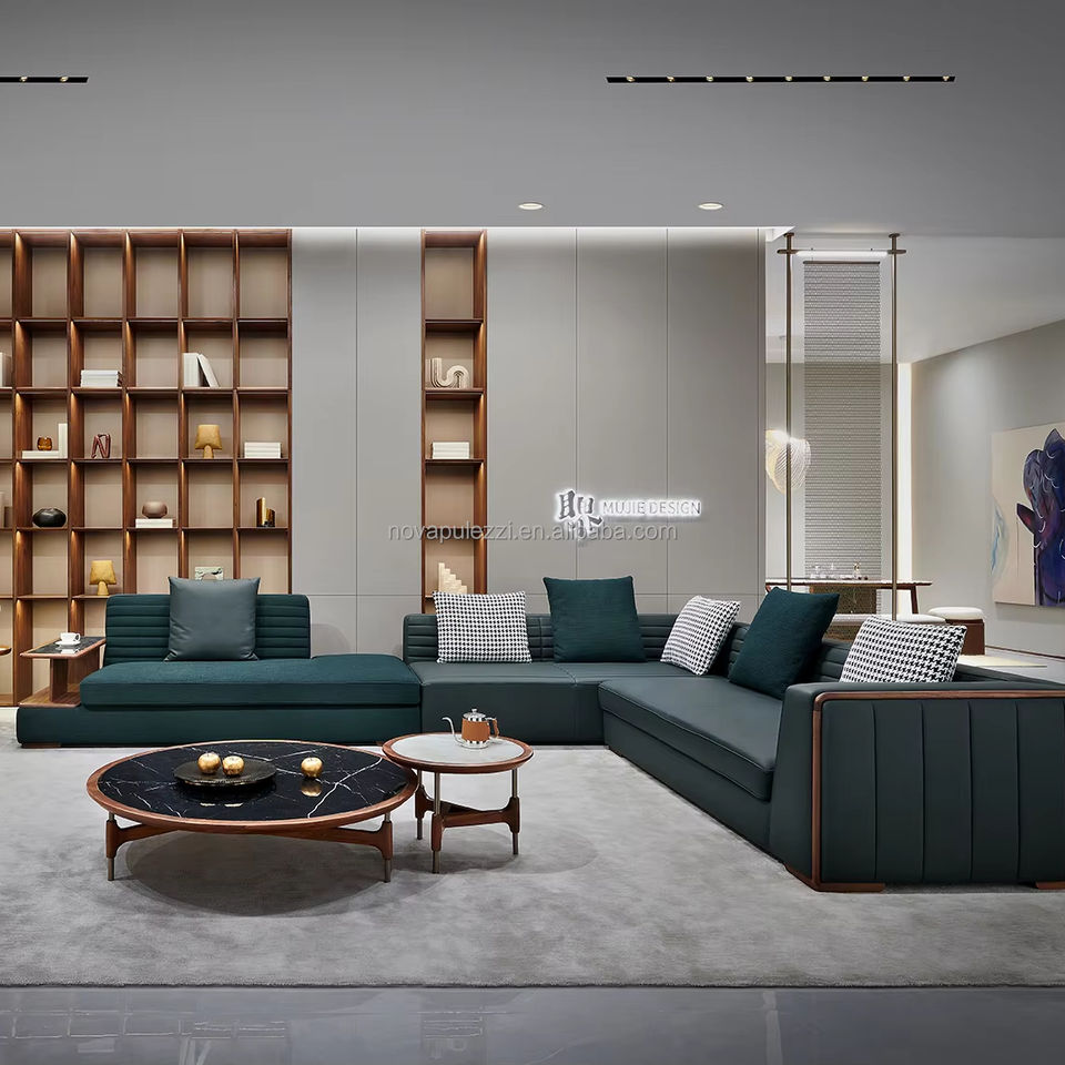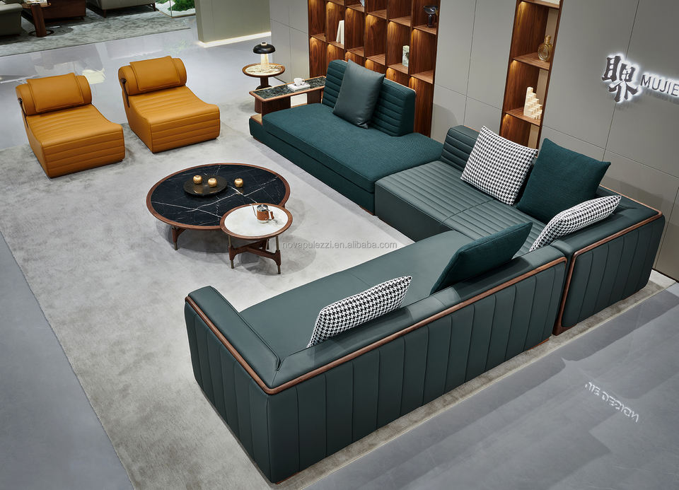ชุดโซฟาหนังวอลนัทระดับไฮเอนด์หรูหราทันสมัยสำหรับห้องนั่งเล่นสไตล์อเมริกาเหนือสำหรับวิลล่าแมนชั่นขนาดใหญ่