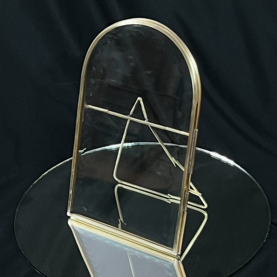 ของตกแต่งบนโต๊ะบ้านสไตล์โมเดิร์นหรูหรา กรอบรูปกระจกสองชั้นสีทอง รูปทรงโค้ง กรอบรูปกระจกวินเทจ