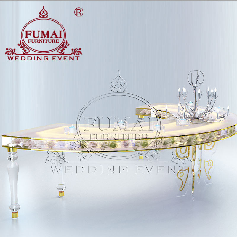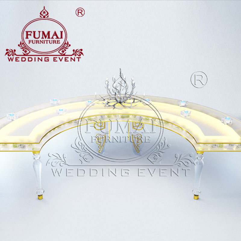 โต๊ะจัดงานแต่งงานอะคริลิคโปร่งใสครึ่งรอบโรงแรมหรูหราทันสมัย