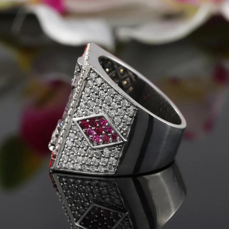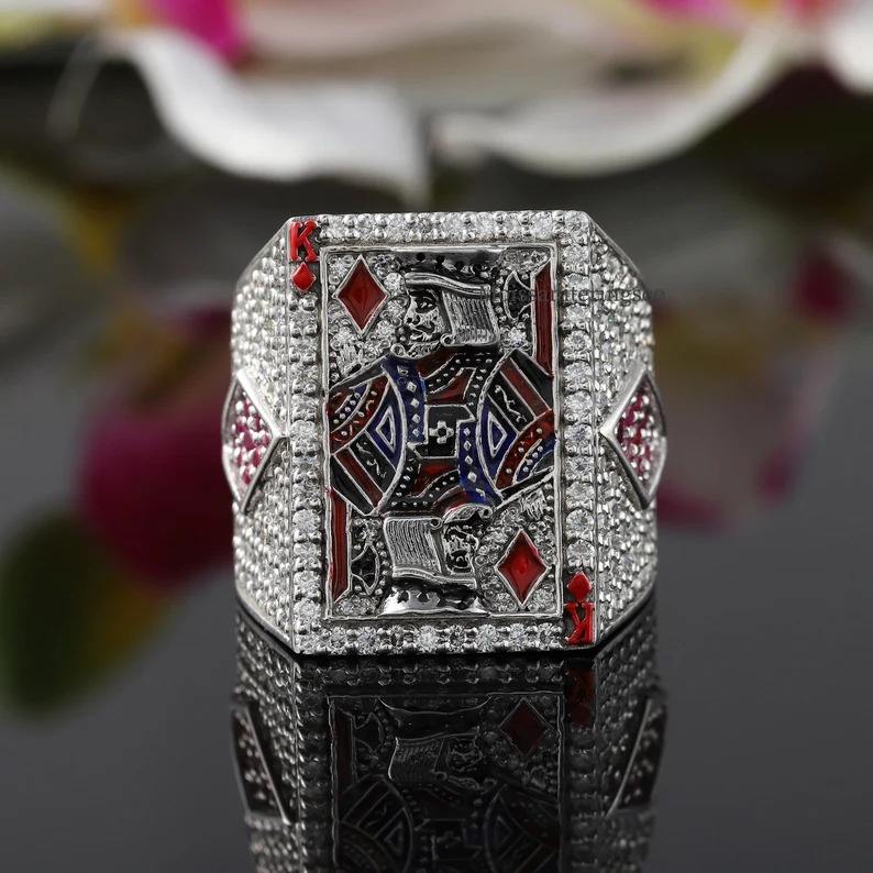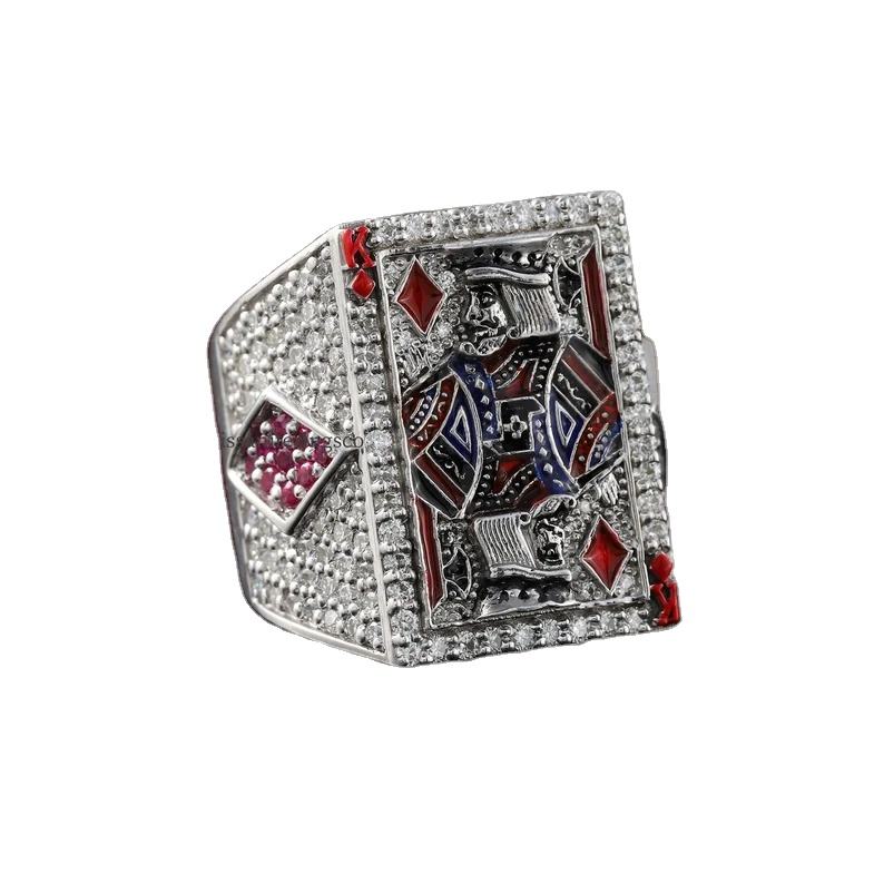 แหวนผู้ชายสไตล์ฮิปฮอปสุดหรูหราประดับเพชรคริสตัลและพลอยเทียมรูปไพ่คิง
