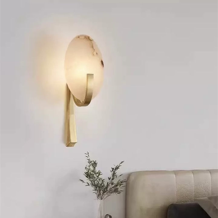 โคมไฟติดผนังทองเหลืองสไตล์โมเดิร์นหรูหราในร่มโคมไฟระย้าทรงกลมสีทองธรรมชาติแหล่งกำเนิดแสง LED สำหรับตกแต่งข้างเตียงโรงแรมทางเดิน