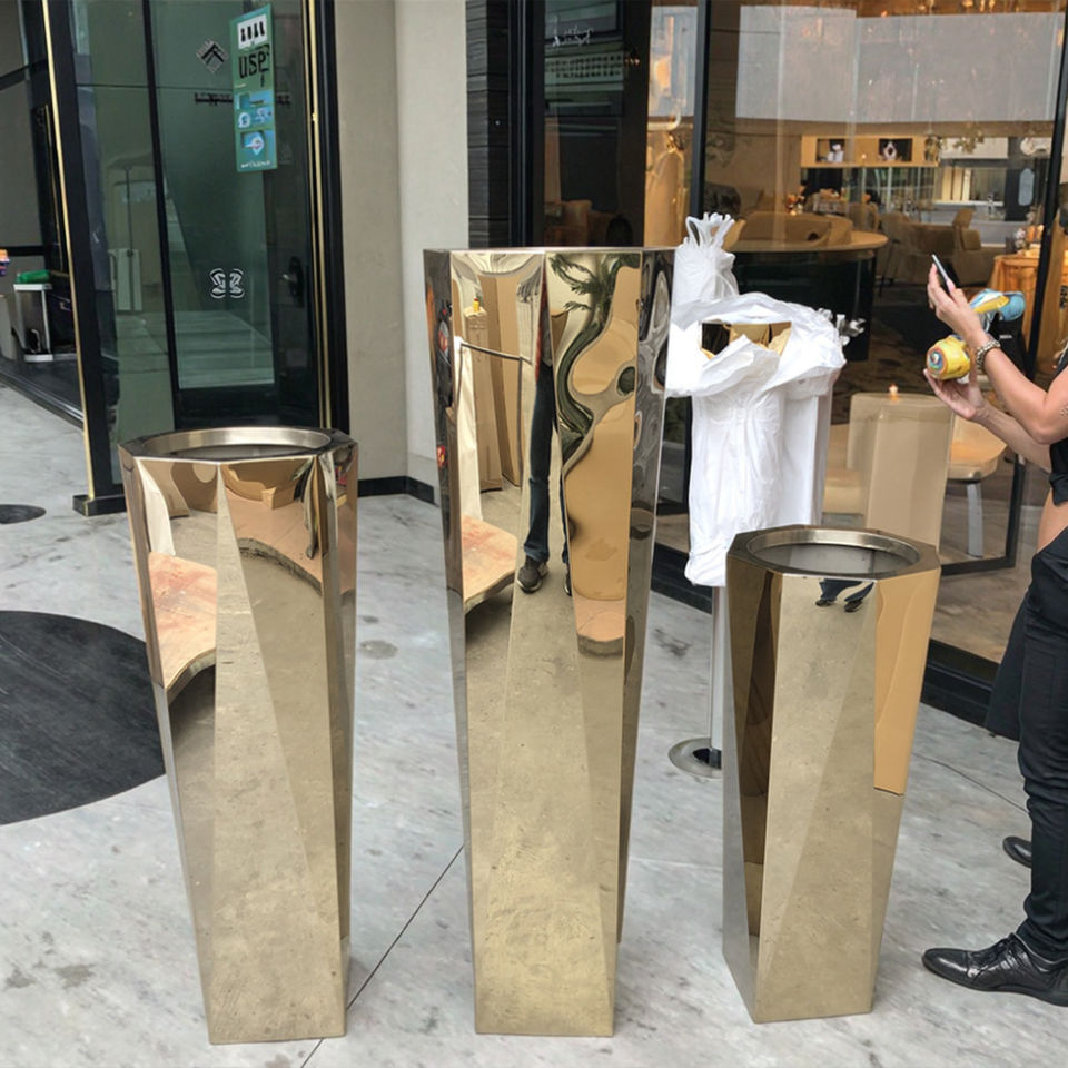 แจกันดอกไม้และกระถางต้นไม้ทำจากโลหะขนาดใหญ่หรูหราทันสมัยสำหรับในร่มแจกันทำด้วยมือสีเงินสีทอง