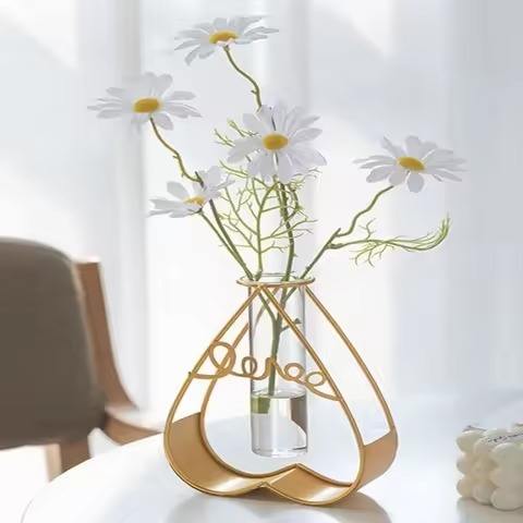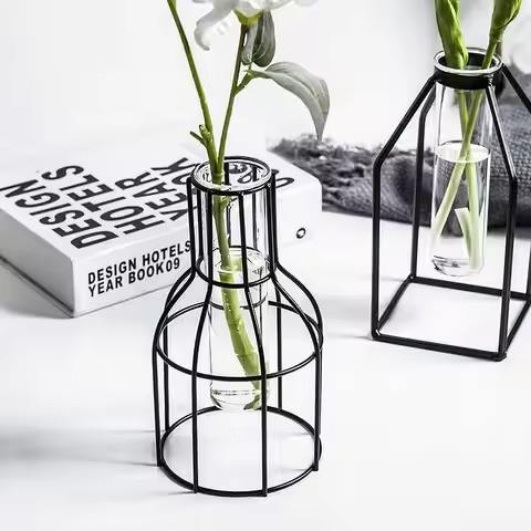 แจกันดอกไม้ทรงหลอดทดลองโลหะเหล็กดีไซน์หรูทันสมัย แจกันแก้วแบบไฮโดรโปนิกส์พร้อมลวดตกแต่ง สำหรับตกแต่งบ้าน ห้องนั่งเล่น ห้องนอน ห้องรับประทานอาหาร