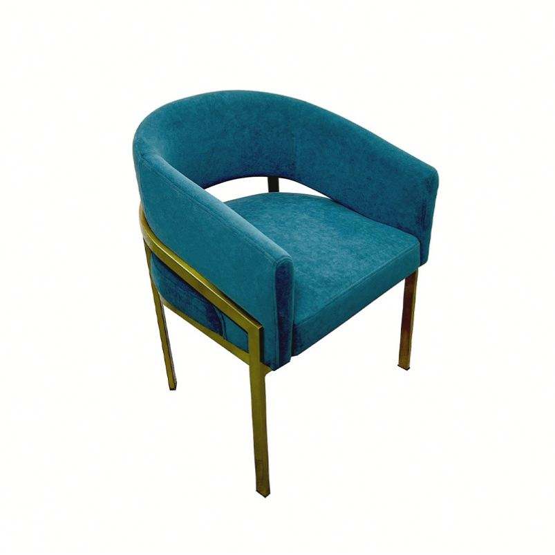 เก้าอี้โซฟาเดี่ยวเหล็กหรูหราทันสมัยพร้อมผ้ากำมะหยี่แฟชั่นเรียบง่ายเก้าอี้รับประทานอาหารสำหรับโรงแรมและร้านอาหาร