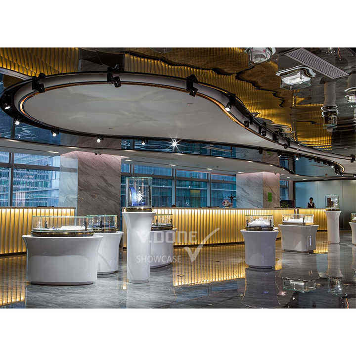 ตู้โชว์เครื่องประดับทำจากเหล็กสแตนเลสหรูหราทันสมัย V-DONE JC แบบกำหนดเองสำหรับเครื่องประดับร้านค้าปลีกช้อปปิ้ง