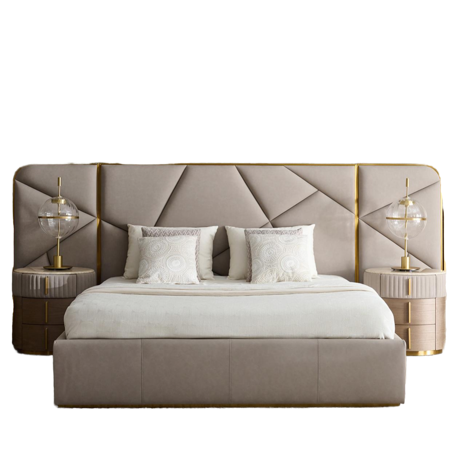 กรอบเตียงคิงไซส์ที่ทันสมัยหรูหราผลิตเฟอร์นิเจอร์ห้องนอนที่มีการออกแบบใหม่ล่าสุดทำจากไม้สนจีน