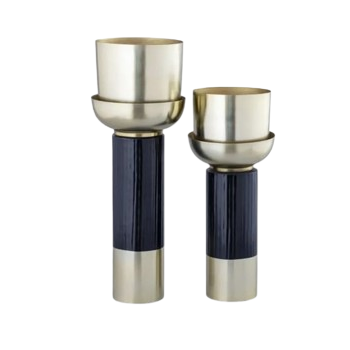 เชิงเทียนเคลือบผงสีดำทรงหกเหลี่ยมทำจากโลหะหรูหราทันสมัยสำหรับตกแต่งบ้านดีไซน์ฟ้าผ่างานแต่งงาน