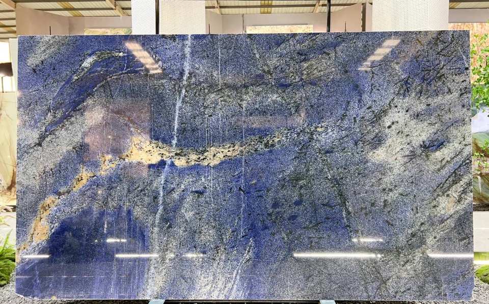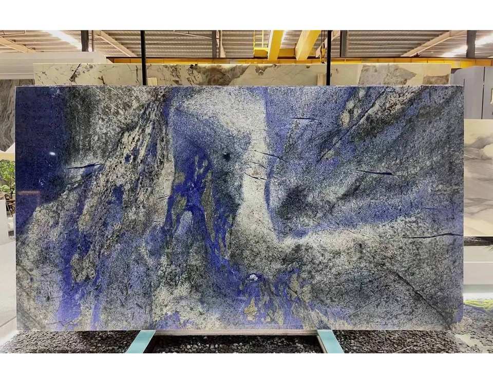 แผ่นควอตซ์ไซต์หรูหราทันสมัย แฟนตาซีบลูแซฟไฟร์ ขนาด 3200x1600 มม. ขัดเงา กันน้ำ สำหรับออกแบบพื้นหินอ่อน ผลิตในจีน