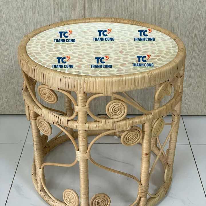 Modern Luxury Rattan Cafe Table with Mother of Pearl Inlay Elegant Handcrafted Wicker Coffee Table Design