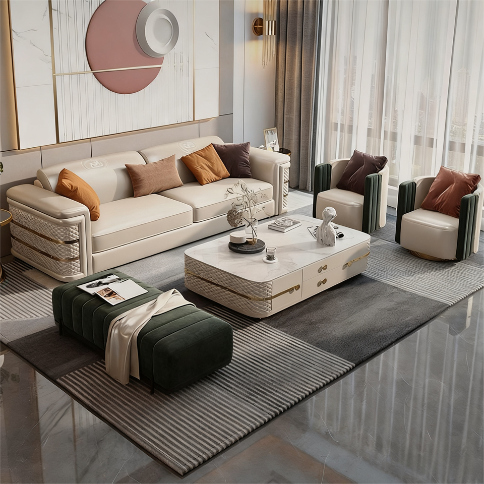 ชุดโซฟาหนังหุ้มบุแบบปรับเอนได้ทรงสี่เหลี่ยมผืนผ้า สไตล์อิตาลี สำหรับห้องนั่งเล่นหรูหราทันสมัย เหมาะสำหรับอพาร์ทเมนต์ โรงแรม และวิลล่า