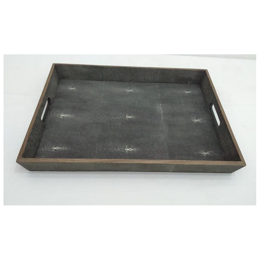 โมเดิร์นหรูหราสี่เหลี่ยมผืนผ้าตกแต่ง FAUX SHAGREEN ถาดขายส่งโต๊ะไม้ shagreen ถาดเสิร์ฟสําหรับโต๊ะกาแฟ