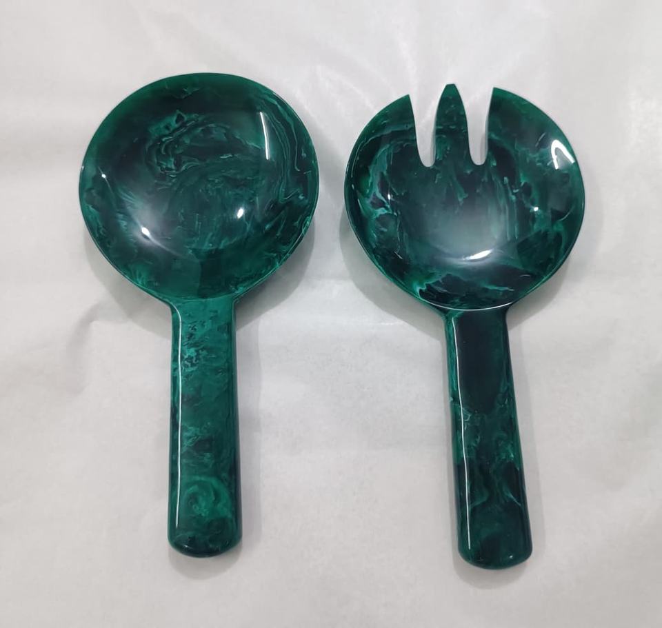 ชุดช้อนส้อมเรซิ่นหรูหราทันสมัยสำหรับเสิร์ฟสลัด พร้อมช้อนและส้อม สำหรับงานปาร์ตี้ ใช้กับเครื่องล้างจานได้ เป็นมิตรกับสิ่งแวดล้อม