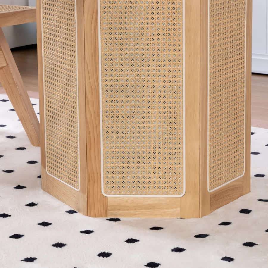 โต๊ะรับประทานอาหารทรงกลมหรูหราทันสมัยพร้อมกรอบไม้สักเนื้อแข็งและขาหวายสานสำหรับใช้ในร่ม/กลางแจ้ง-เฟอร์นิเจอร์บ้าน