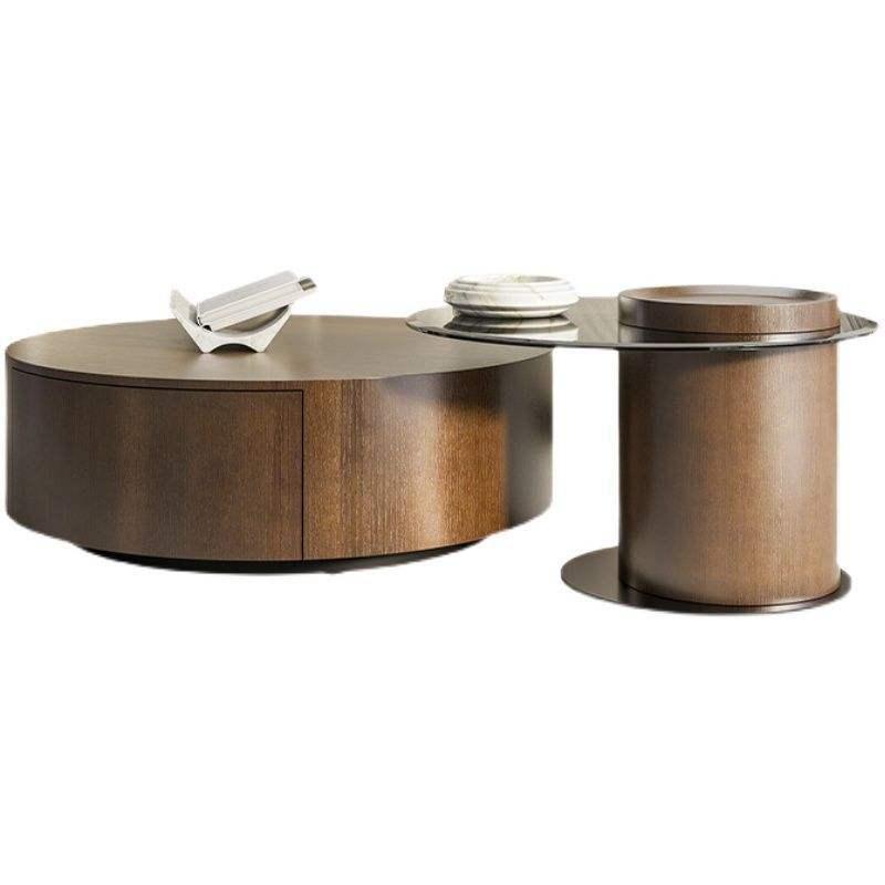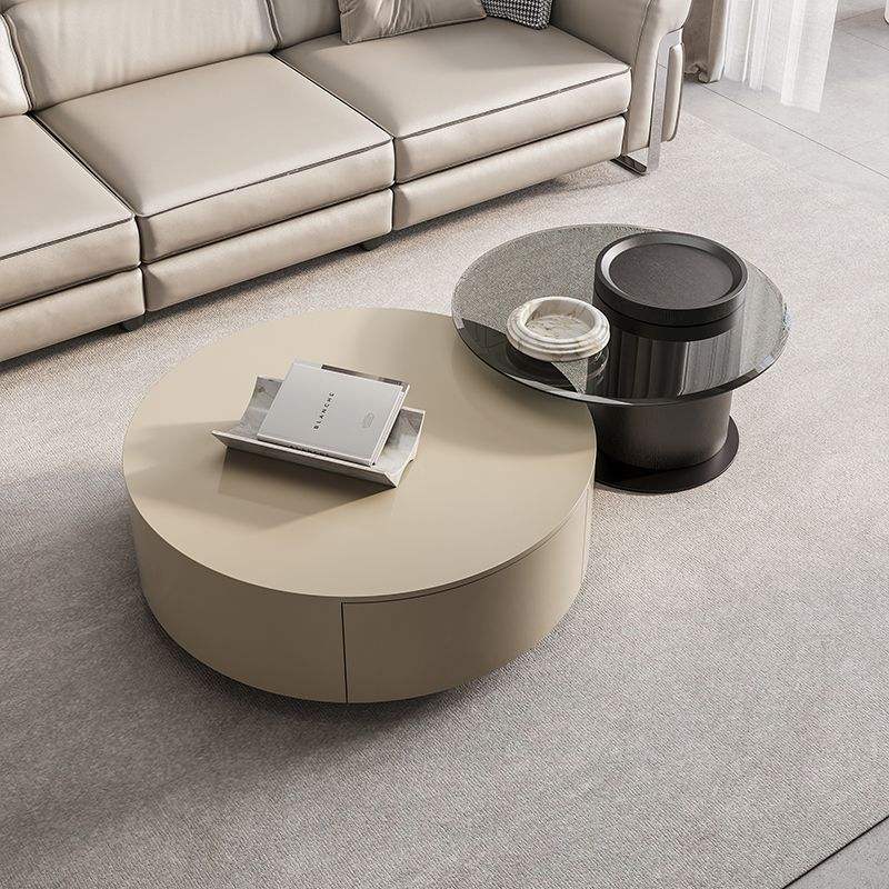 ชุดโต๊ะกาแฟทรงกลมแก้วต่ำหรูหราทันสมัยเฟอร์นิเจอร์บ้านอเนกประสงค์พร้อมลิ้นชักสำหรับห้องนั่งเล่น
