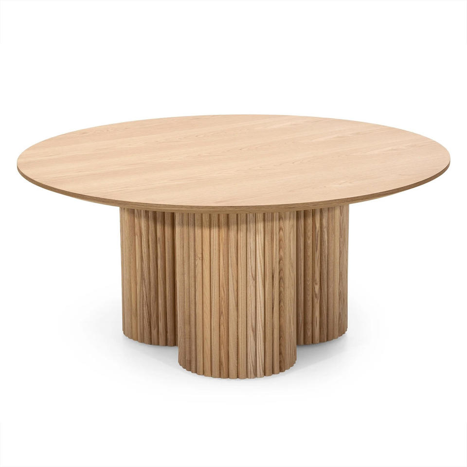 Modern Luxury Round Solid Wood Coffee Table Clover Fluted Base Large Oak Veneer Ribbed Pedestal Foldable Home Furniture Hotels