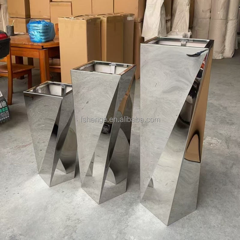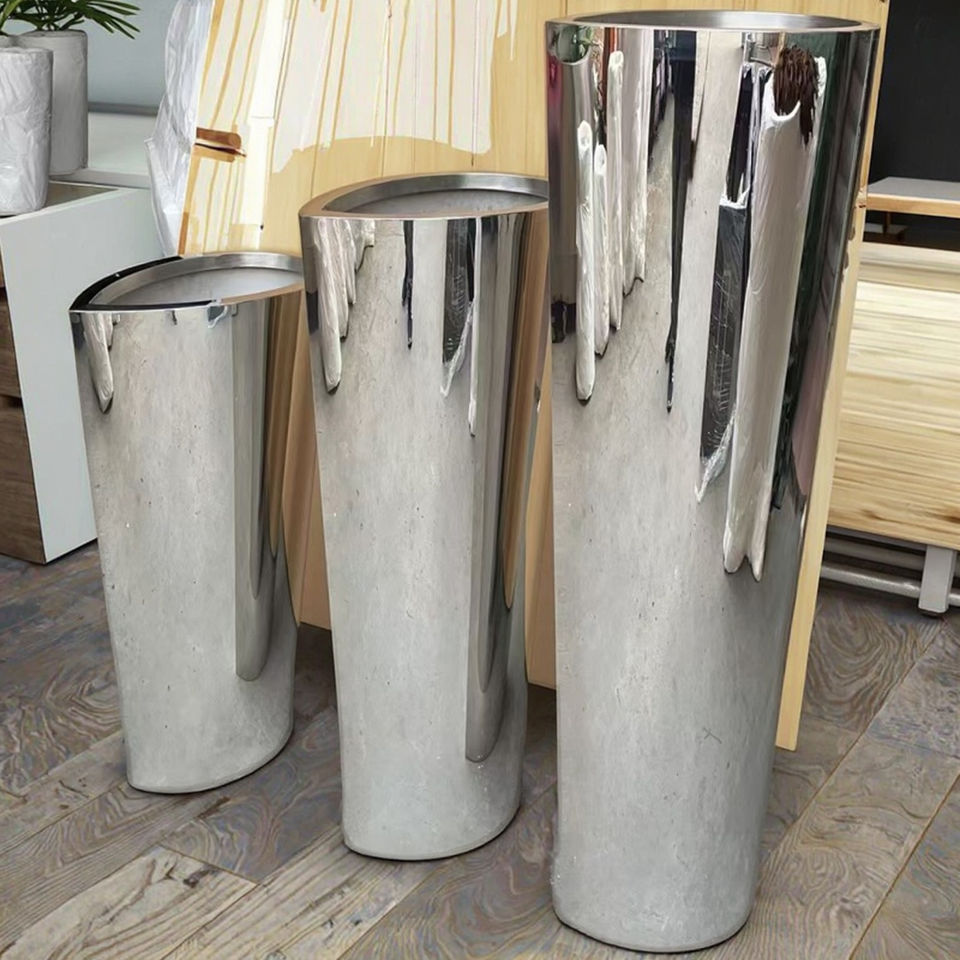 แจกันตั้งพื้นสีเงินขนาดใหญ่หรูหราทันสมัยของตกแต่งบ้านกระถางต้นไม้โลหะสำหรับตกแต่งในร่ม