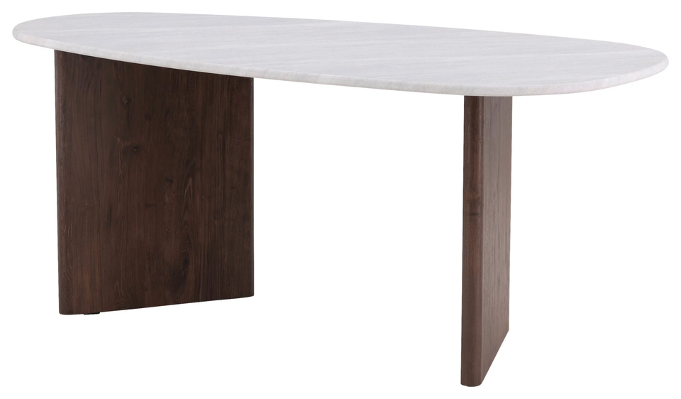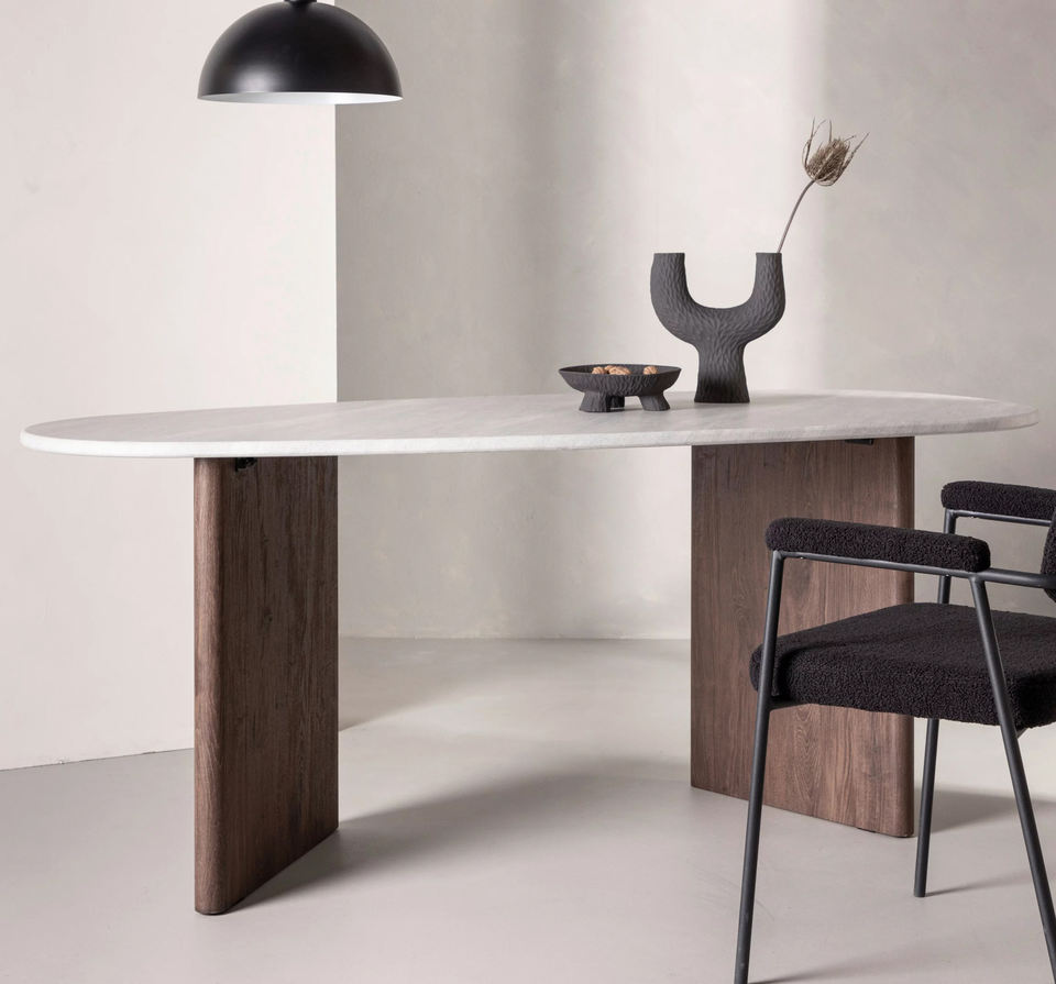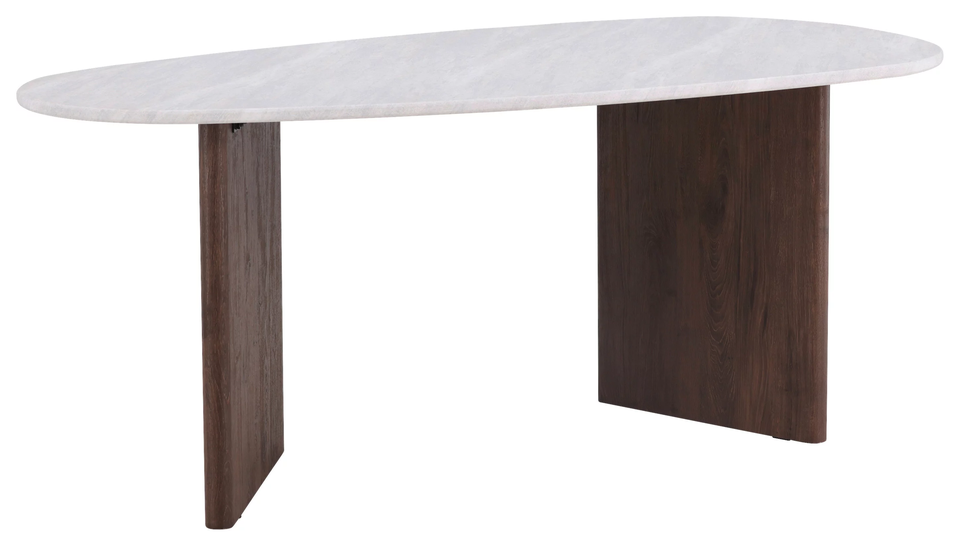 Modern Luxury Simple High End Kitchen White Marble Stone Oval Marble Top Solid Acacia Wood Brown Finish Base Home Dining Table