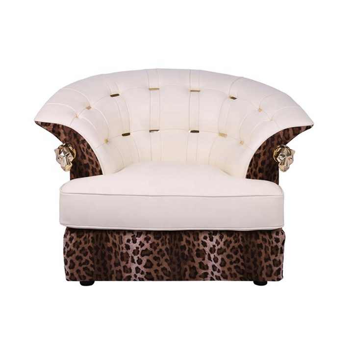 ชุดเฟอร์นิเจอร์ห้องนั่งเล่นทำจากไม้กำมะหยี่พิมพ์ลายเสือดาวด้วยหนังสีขาวทองแดงหรูหราทันสมัย