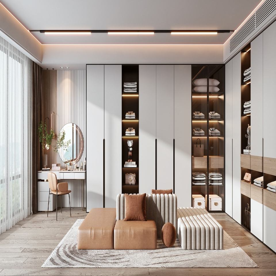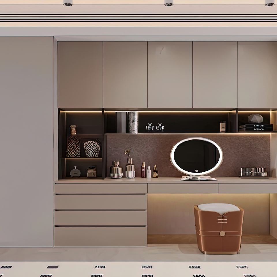 ชุดเฟอร์นิเจอร์ห้องนอนไม้บานเลื่อนหรูหราทันสมัย ตู้เสื้อผ้าแบบวอล์คอิน ตู้เสื้อผ้าสำหรับห้องนั่งเล่น ยังไม่มีรีวิว