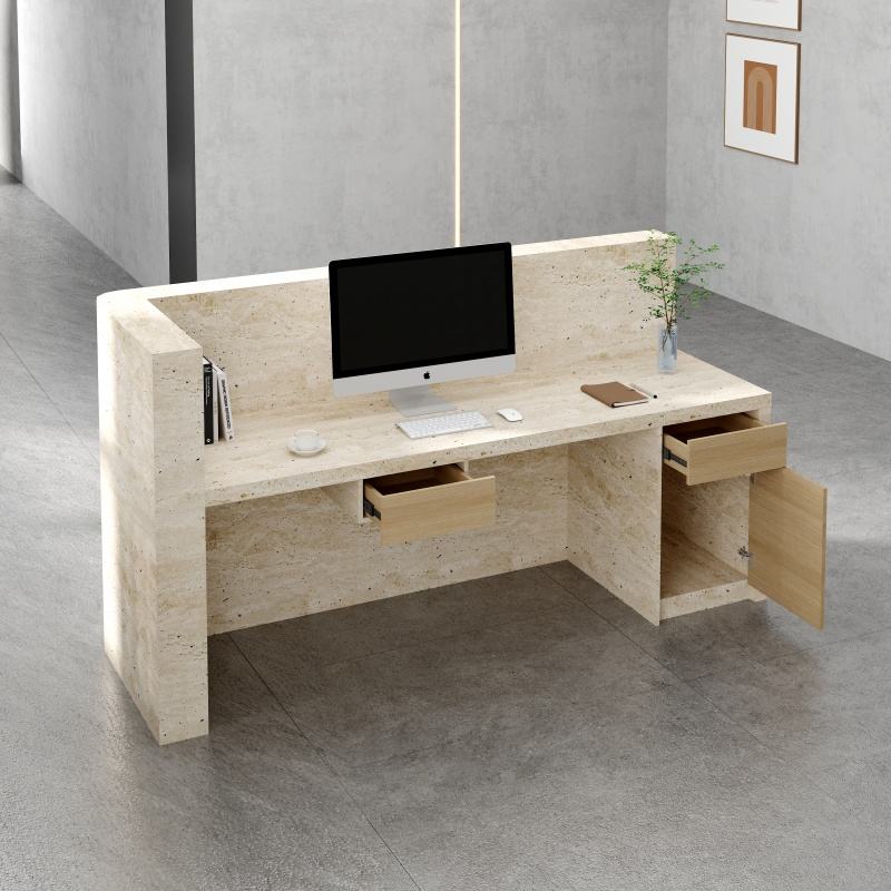 แผนกต้อนรับขนาดเล็กหรูหราทันสมัยแผนกต้อนรับส่วนหน้าสีขาวทำจากหินสำหรับอาคารสำนักงาน