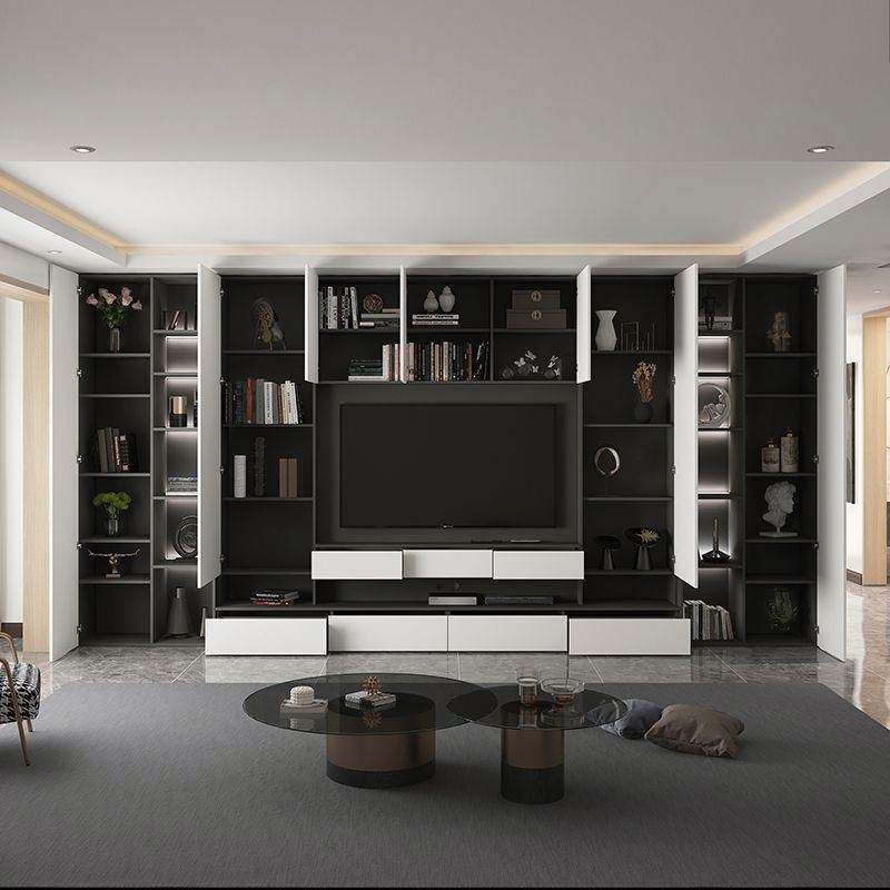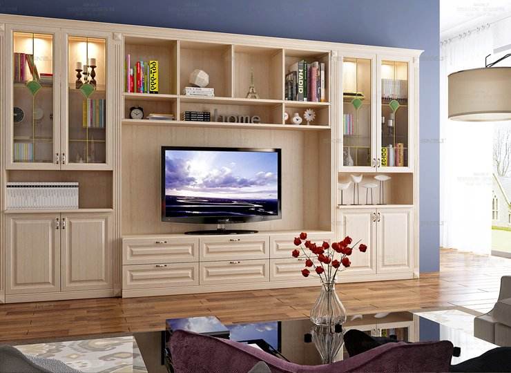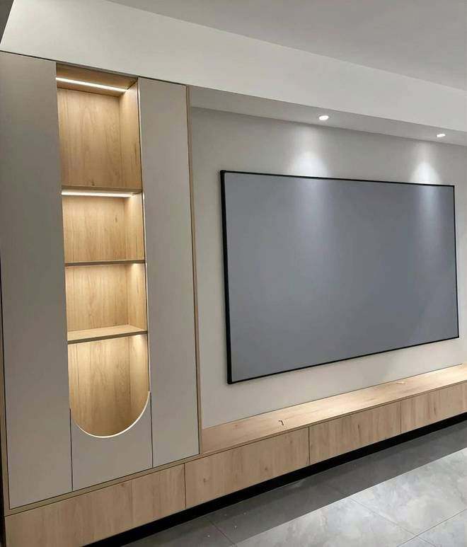 ทีวีตั้งโต๊ะทำจากไม้เนื้อแข็งหรูหราทันสมัยติดตั้งบนผนังสำหรับบ้านห้องรับประทานอาหารห้องนอนโรงแรมพร้อมที่เก็บของเต็มผนัง