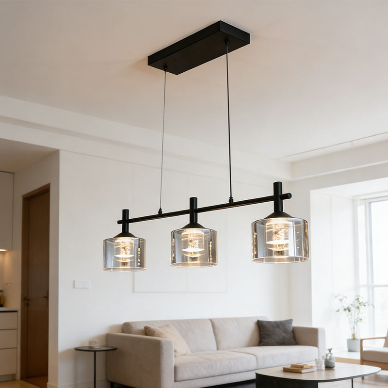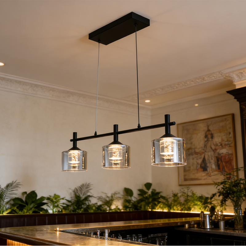 โคมไฟเพดานทรงสี่เหลี่ยมทันสมัยหรูหรา ไฟตกแต่งบ้านแบบเส้นตรง ขั้วหลอด E12 E14 โคมไฟระย้าแก้วสำหรับห้องครัว ห้องรับประทานอาหาร บาร์ โรงแรม ห้องนั่งเล่น