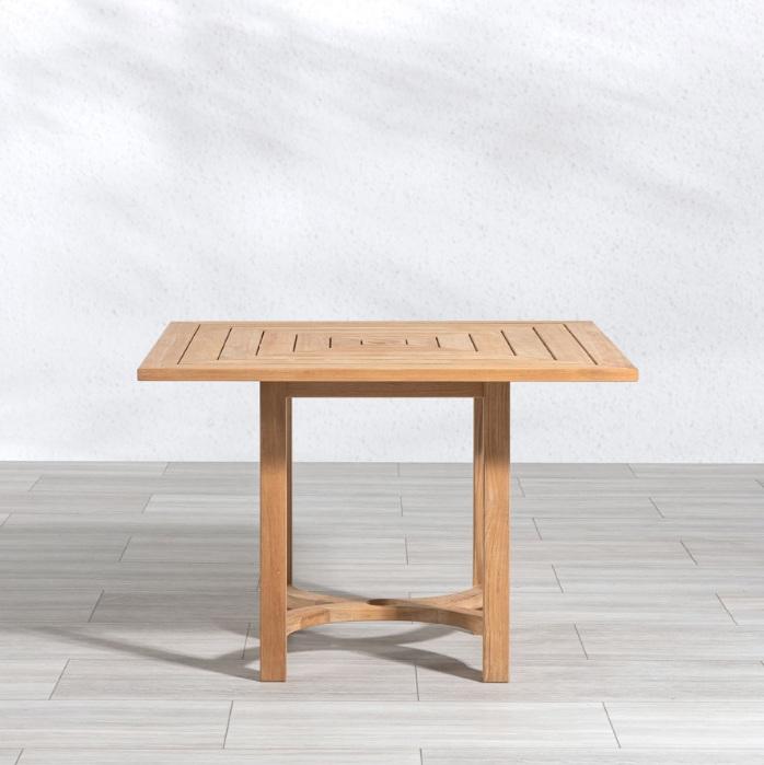 โต๊ะรับประทานอาหารกลางแจ้งรูปทรงสี่เหลี่ยมหรูหราทันสมัยเฟอร์นิเจอร์ไม้เนื้อแข็งไม้สักอย่างสำหรับโรงแรมสวนสาธารณะสวน