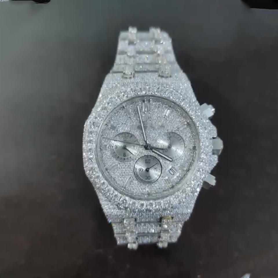 นาฬิกาอัตโนมัติสไตล์ฮิปฮอปหรูหราทันสมัยประดับเพชรโมอิสซาไนต์บนตัวเรือนสแตนเลสสตีล เหมาะสำหรับทุกโอกาสสำหรับผู้ชาย - นาฬิกาหน้าปัดกระจก ของขวัญ