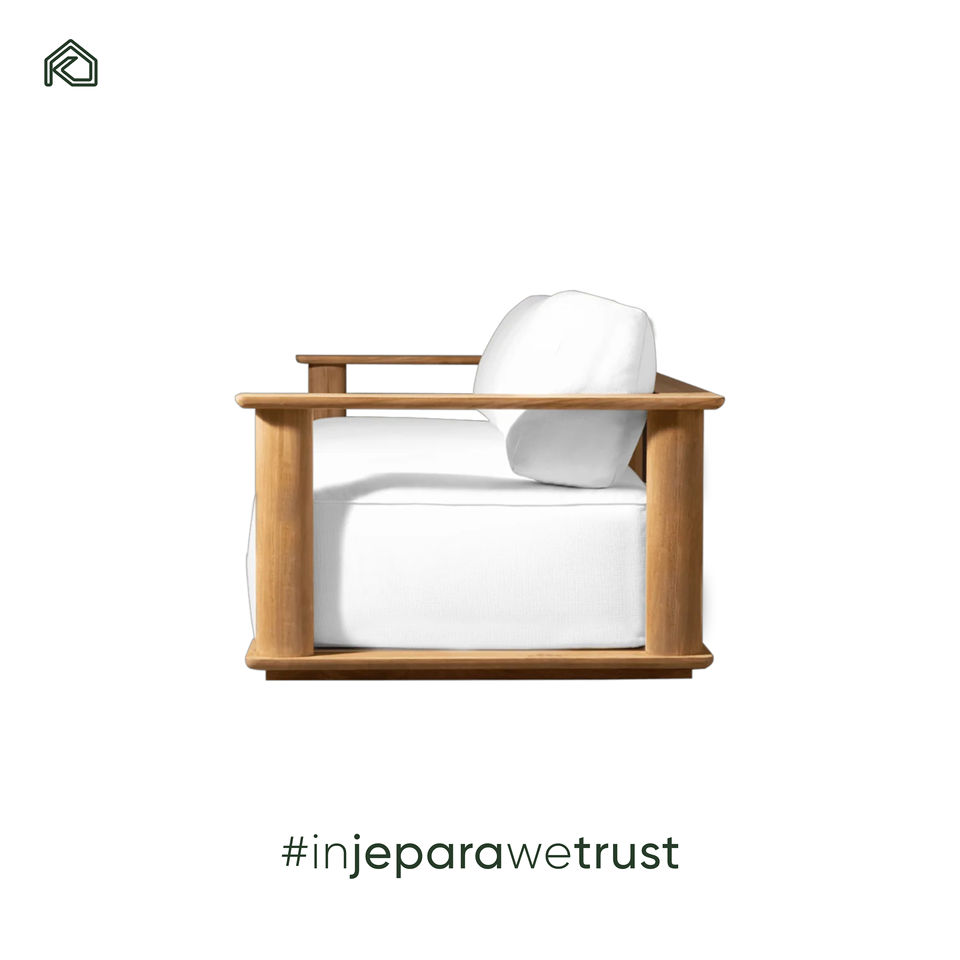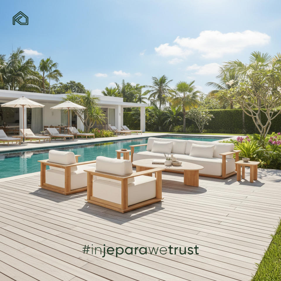 ชุดโซฟาไม้สักแท้กันน้ำสำหรับระเบียงวิลล่าหรูหราทันสมัย แบบสามที่นั่ง พร้อมเบาะสีครีมขาว สำหรับลานบ้านหรือโรงแรม