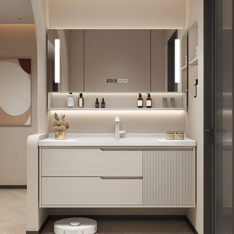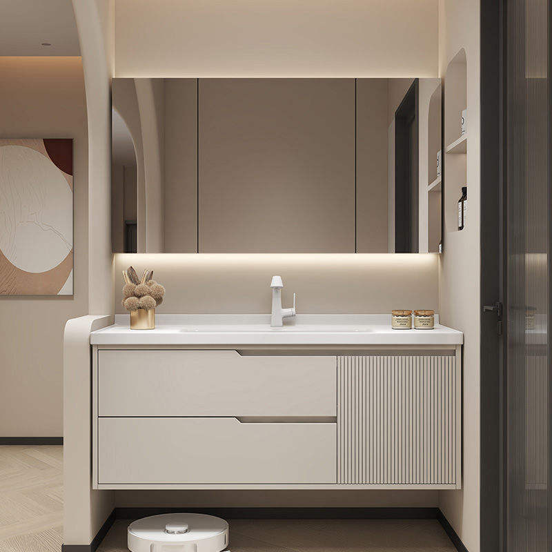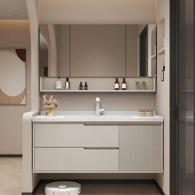 Modern Luxury Wall Mounted Wooden Bathroom Vanity With Waved Door Panel 30" Gray Bathroom Vanity