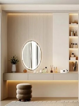 โต๊ะเครื่องแป้งเฟอร์นิเจอร์ไม้หรูหราทันสมัยพร้อมคุณสมบัติแต่งหน้าสำหรับโรงแรมและอพาร์ตเมนต์ห้องนอน