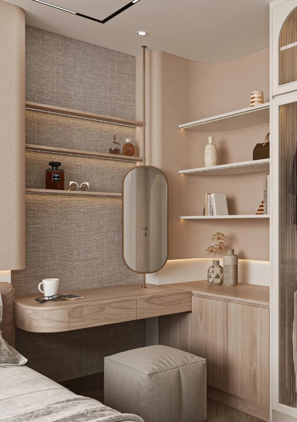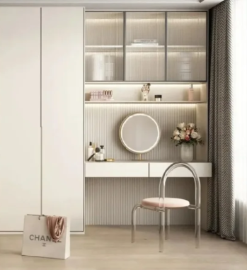 โต๊ะเครื่องแป้งเฟอร์นิเจอร์ไม้หรูหราทันสมัยพร้อมคุณสมบัติแต่งหน้าสำหรับโรงแรมและอพาร์ตเมนต์ห้องนอน