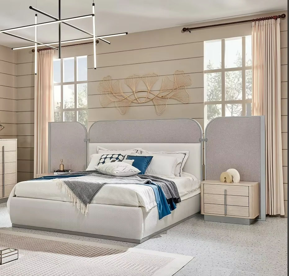 ชุดห้องนอนไม้หรูหราทันสมัยเตียงขนาดใหญ่แบบเรียบง่ายและคลาสสิกสำหรับใช้ในบ้านและโรงแรม