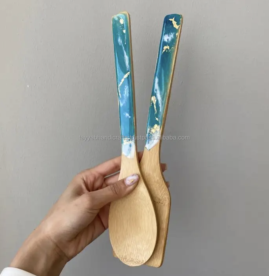 ชุดช้อนส้อมไม้หรูหราทันสมัยสำหรับเสิร์ฟสลัด ใช้ในงานปาร์ตี้ เป็นมิตรกับสิ่งแวดล้อม ภาชนะขนาดใหญ่จากอินเดีย