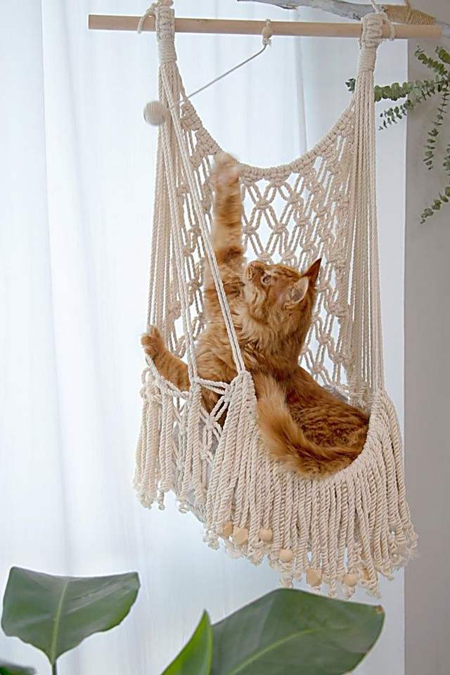 เชือกฝ้ายมาคอตตอนแบบทันสมัยเตียงแมวถ้ำขนาดเล็กผ้ากำมะหยี่นุ่มสบายใช้ในร่มลายสัตว์ทำจากไม้สำหรับบ้านและโรงแรม