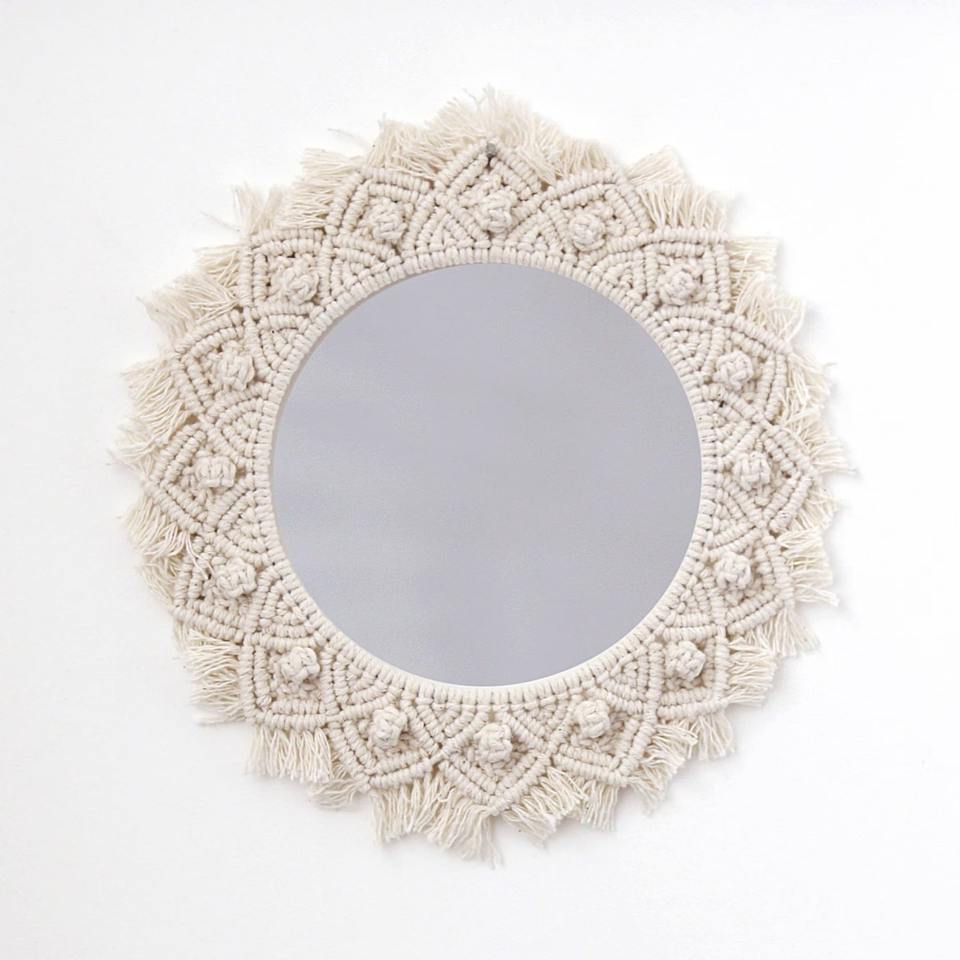 กระจกติดผนังมาคราเม่ทันสมัย งานแฮนด์เมด กรอบไม้ทรงกลม สำหรับตกแต่งบ้าน ราคาขายส่ง คุณภาพดีที่สุด