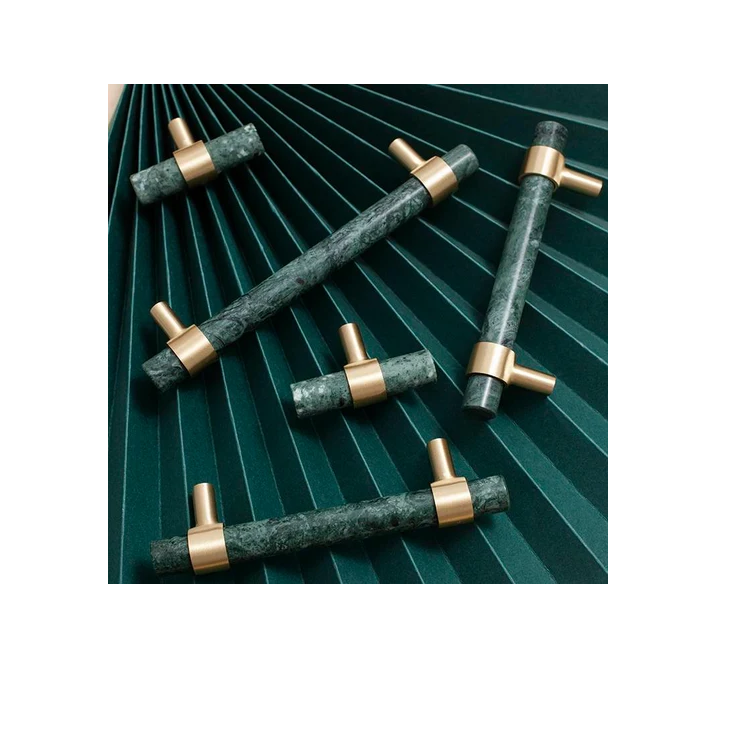 Modern Marble & Brass Cabinet Door Handles Green Marble Kitchen Cabinet Drawer Door Furniture Handle Hot Selling