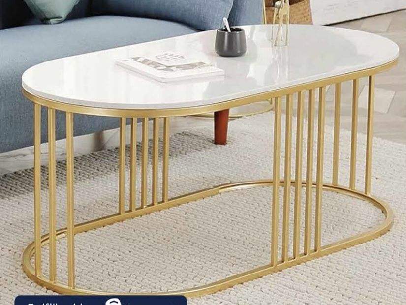 โต๊ะข้างโซฟาและโต๊ะกลางโซฟาโลหะลายหินอ่อนทันสมัย โครงสีทอง เฟอร์นิเจอร์ห้องนั่งเล่นรักษ์โลก ปรับขนาดได้