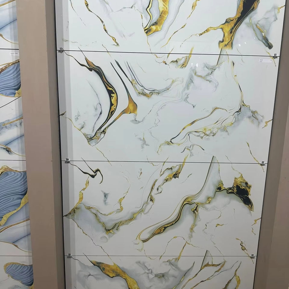 กระเบื้องพอร์ซเลนลายหินอ่อนสไตล์โมเดิร์น ขนาด 600x1200 มม. ผิวเคลือบเงา หนา 8/10 มม. คุณภาพสูง รับประกัน 5 ปีขึ้นไป