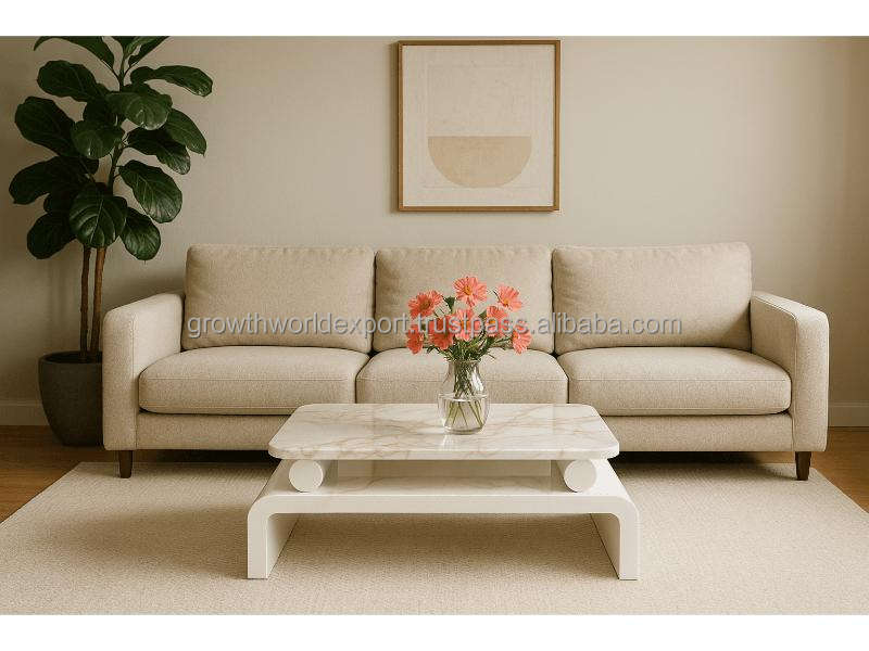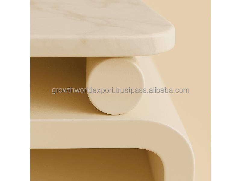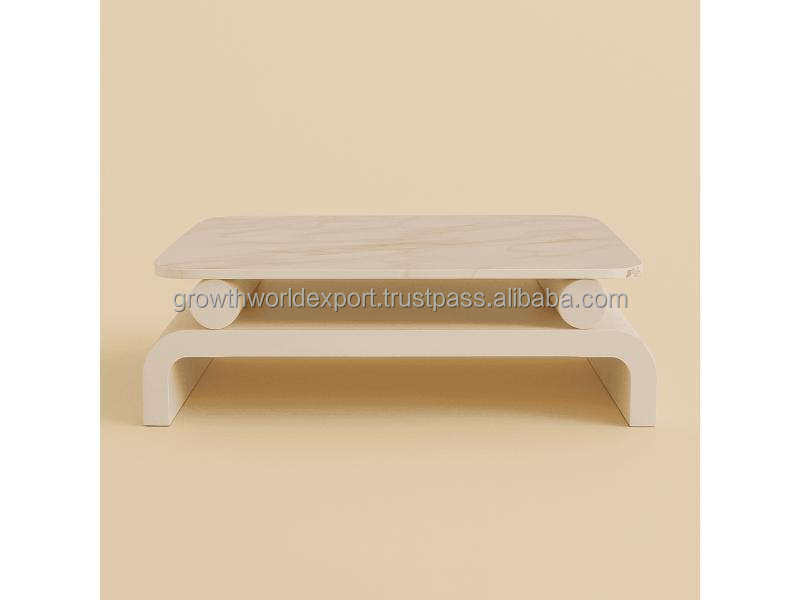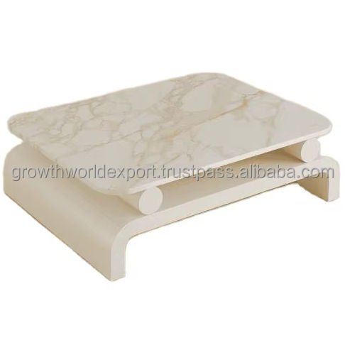 โต๊ะกาแฟท็อปหินอ่อนทันสมัยสำหรับห้องนั่งเล่น โต๊ะกลางสีขาวหรูหรา โต๊ะดีไซน์มินิมอลพร้อมชั้นวางของสุดหรู