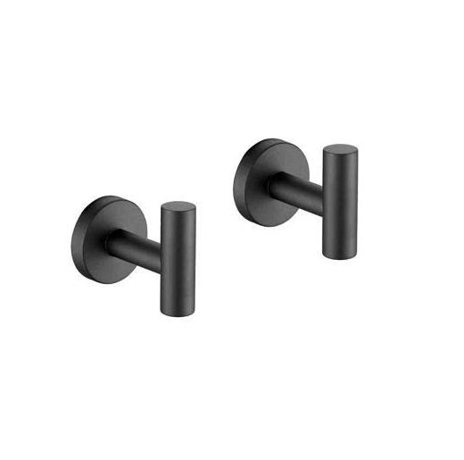ชุดอุปกรณ์ห้องน้ำสีดำด้านทันสมัย ประกอบด้วยราวแขวนผ้าเช็ดตัว, ห่วงแขวนผ้าเช็ดตัว, ตะขอแขวนเสื้อคลุม และที่ใส่กระดาษ