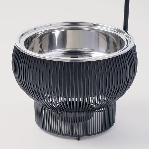 ถาดอุ่นอาหารทรงกลมสแตนเลสสีดำด้านแบบแขวน พร้อมฝาโดมแหลม สำหรับบุฟเฟ่ต์โรงแรมหรู