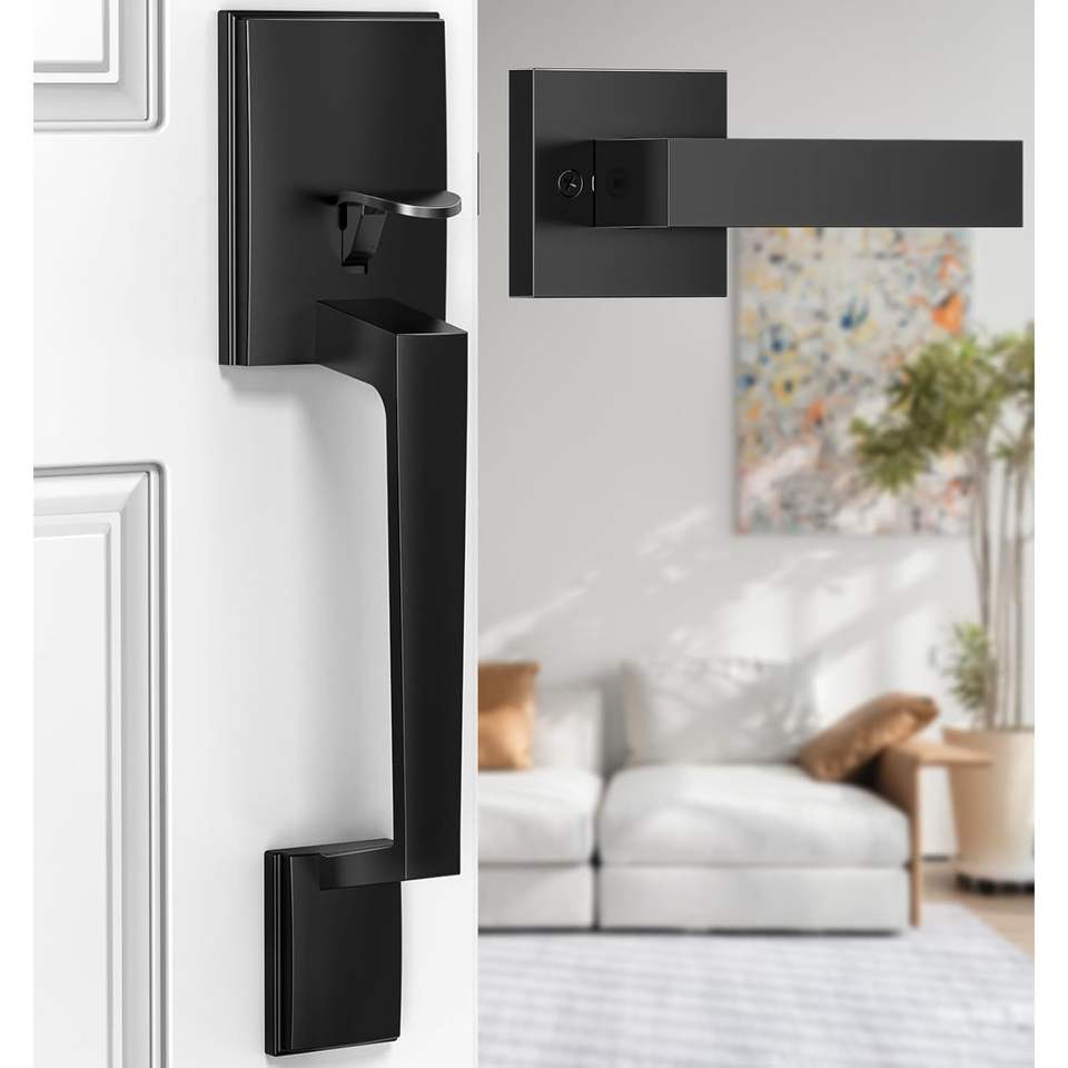 Modern Matte Black Door Handle Zinc Entry Lever Ambidextrous Easy Installation Front Door Hardware